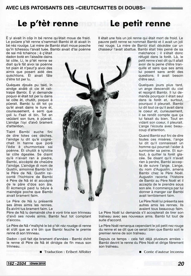 Le petit renne Le p’têt renne Ghete, novembre décembre 2019, Eribert Affolter Article mis en ligne le 28 décembre 2019 par Fleury Louis-Jos.