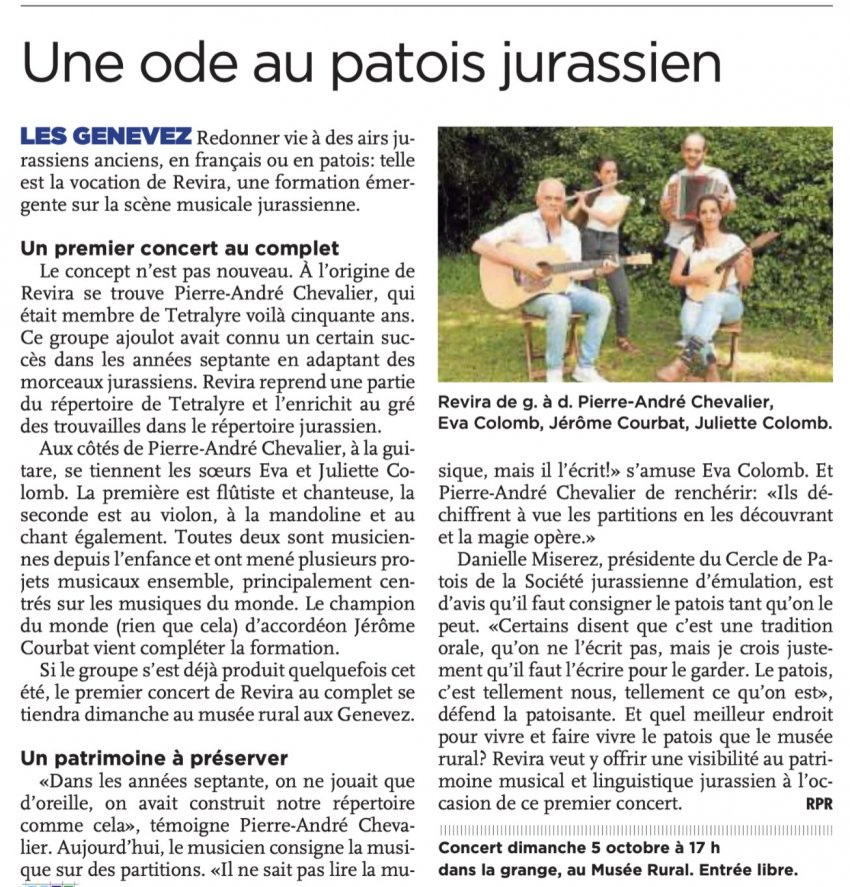 Le premier « vrai » concert de Revira, aura lieu le dimanche 5 octobre au Musée rural des Genevez. Le site de Revira