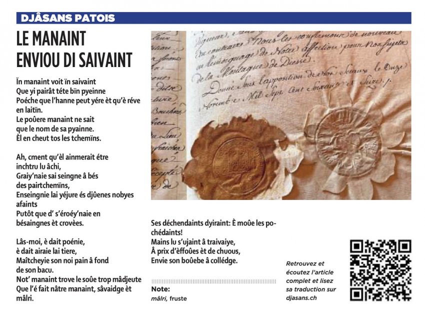 Que l’é fait nâtre manaint, sâvaidge èt mâlri.